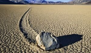 Это такое удивительное явление, которое можно встретить нечасто, но почти во всех частях мира. При этом явлении большие глыбы сами передвигаются по ровной поверхности, оставляя за собой длинный и четкий след. Это происходит из-за комбинации нескольких природных явлений. Так, например, если в одной из местностей, где это происходит, наступает зима, почва покрывается тонким льдом. Вследствие скользкой поверхности и воздействия даже самого слабого ветра эти камни понемногу передвигаются. Интересно, что эти передвижения могут занять даже десятки лет.